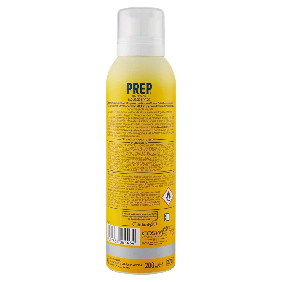 Prep Mousse Solare SPF20 200ml Protezione Media con Vitamina E Non Unge.